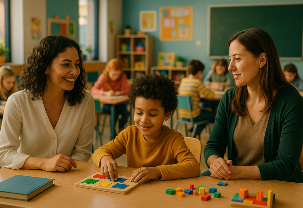 Orientação a professores e equipe pedagógica para implementação de adaptações curriculares e metodológicas. Desenvolvimento de Planos Educacionais Individualizados (PEI). Mediação entre família e escola para garantir suporte especializado adequado.
