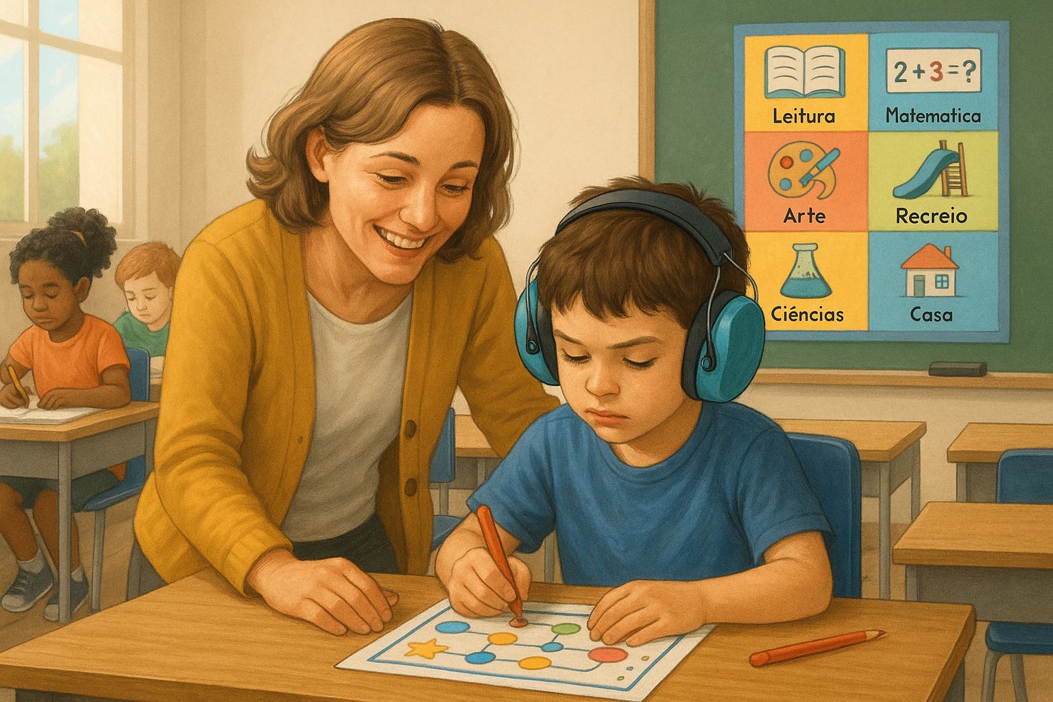Comorbidades na Escola: Estratégias para Inclusão e Aprendizagem Imagine uma sala de aula como um palco vibrante, onde
